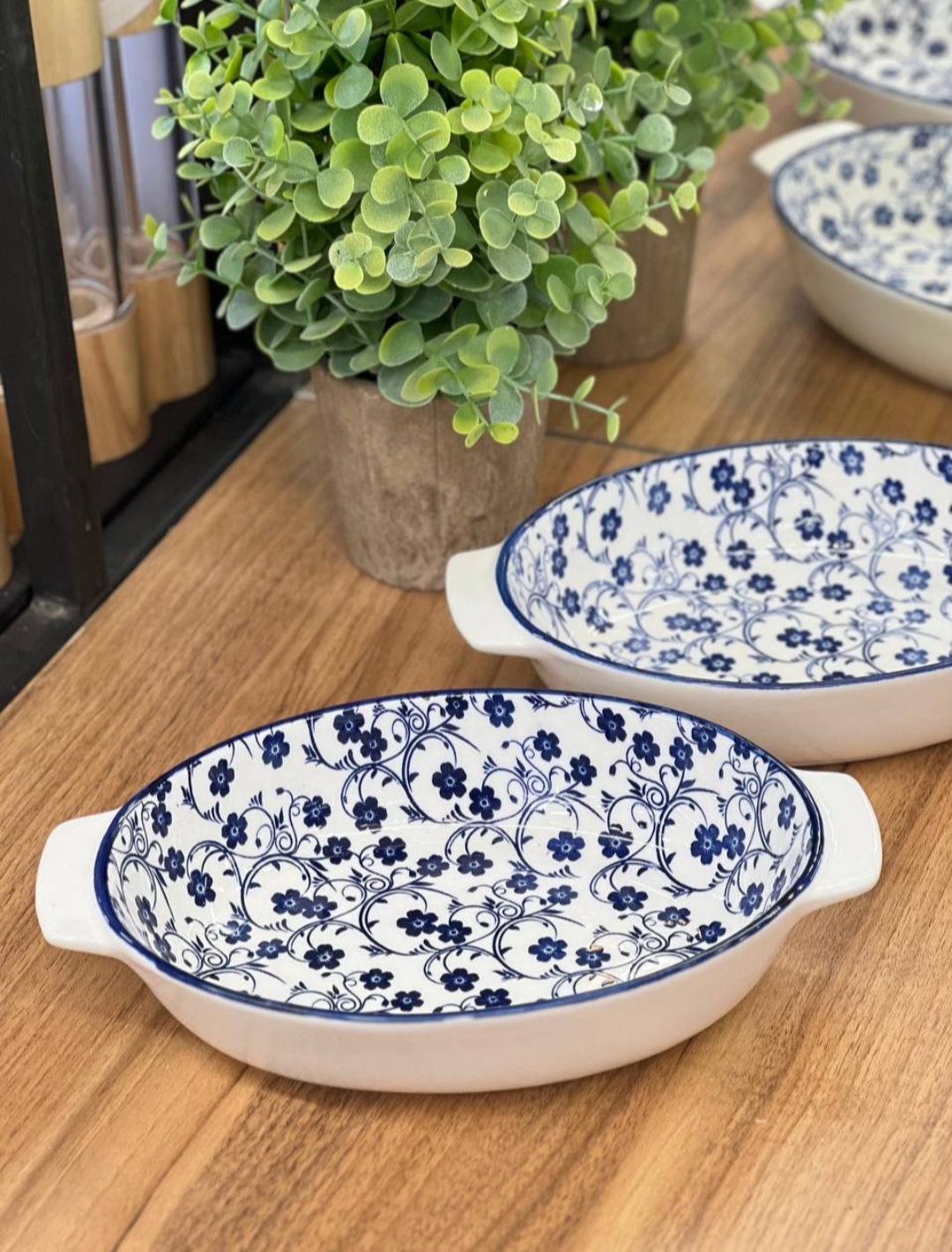 تابه مایکروویوی بیضی طرح گل آبی برند دنی هوم