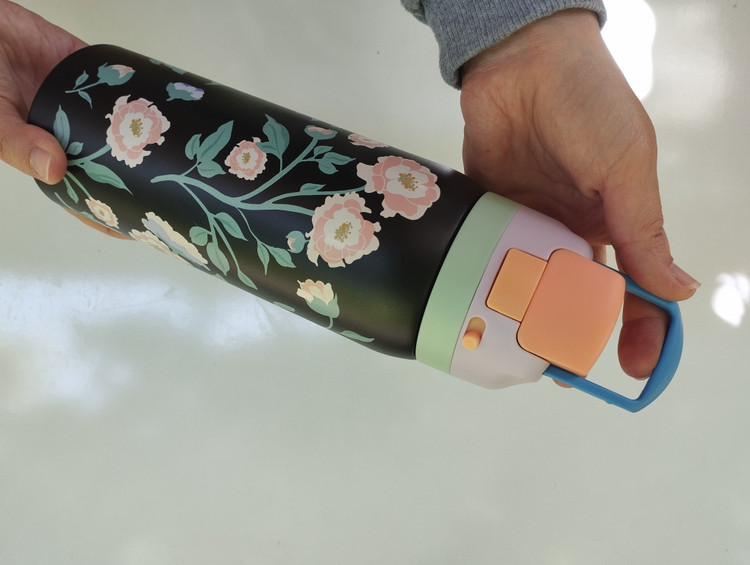 این ماگ با حجم ۱ لیتر و قابلیت نگهداری دما برای ۶ ساعت گرم و ۷ ساعت سرد، مناسب برای آب یخ و جوش است. جنس آن استیل ۳۰۴ و رویهاش حالت مخملی با گلهای کمی برجسته دارد.