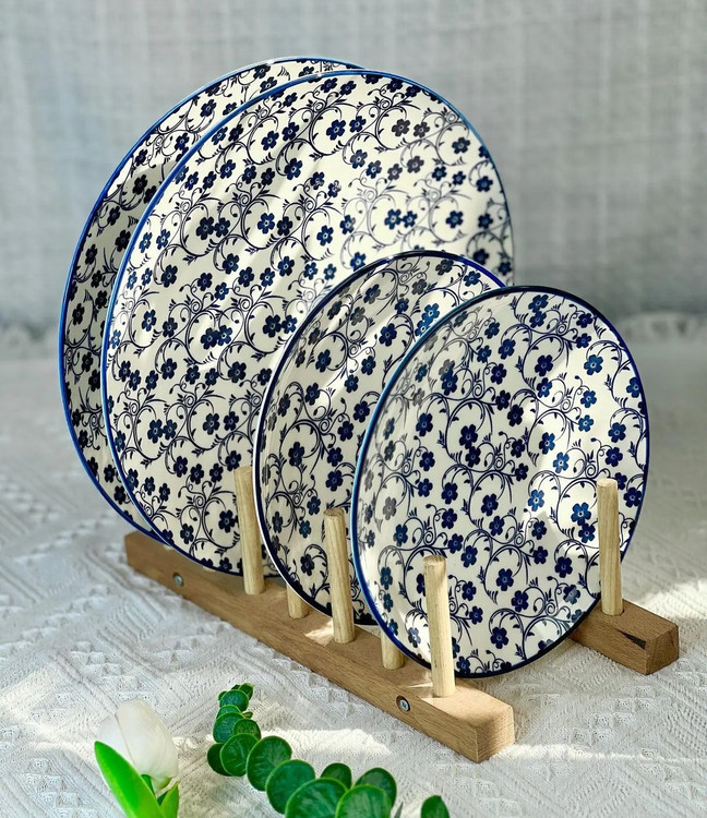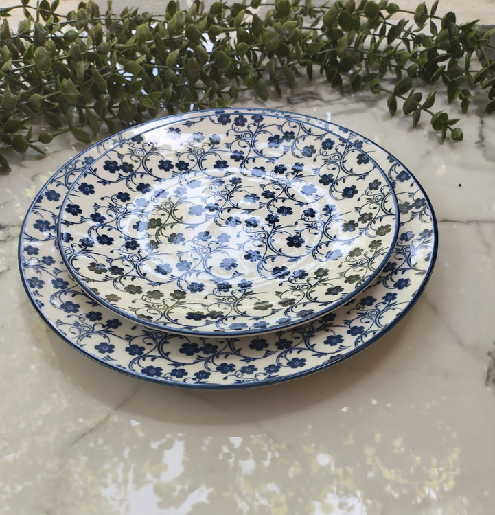 بشقاب پیش دستی سایز22سانت گل آبی از برند دنی هوم قابل استفاده در ماشین ظرفشویی و مایکروویو بدون رنگ پریدگی